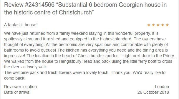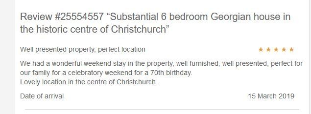 An imposing and very spacious, Grade 2 Listed, three storey, Georgian, townhouse, fully refurbished and refurnished in 2015 to a very high standard that can accommodate up to 15 people. Centrally located within the Christchurch conservation area,