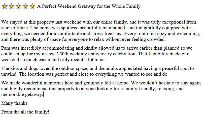 - Please note we do not accept Hen or Stag party bookings for this property, failure to advise us could result in the withholding of the security bond.